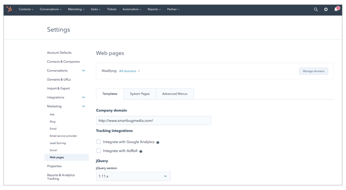 To setup a robots.txt file in HubSpot, navigate to the gear icon (Settings) in the upper right-hand corner. In the left-hand menu, select Marketing > Web Pages. Scroll down, and customize how search engines access your published pages by using the “disallow” functionality. The settings you customize here will apply to all published pages.